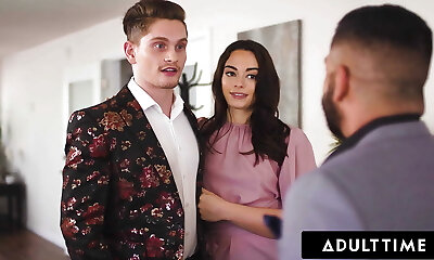 Interracial Threesome with Tight Brunette