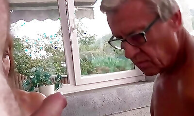 German Mature's Big Tits Blowjob for Her Horny Step Son and Friend