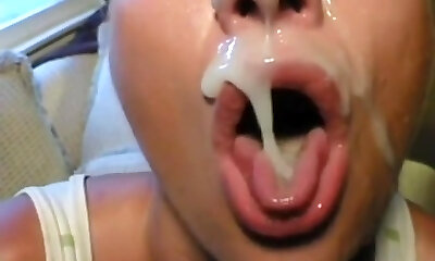 Exotic Blowjob Queen: Brunette Beauty's Cum-Drenched Tongue