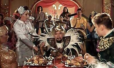Busty Brunette Gets Fucked By Group Of Men At Dinner Party