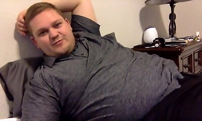After Work Relaxation: Gay Bear's Horny Handsome Lies Down on Bed Enjoying His Time