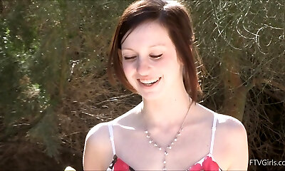 Skinny teen takes dick outdoors
