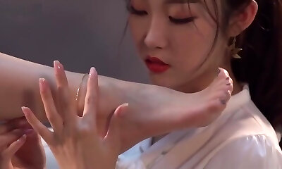 Asian Lesbian Foot Fetish: Sexy Chinese Legs Get Polished by Horny Girlfriend