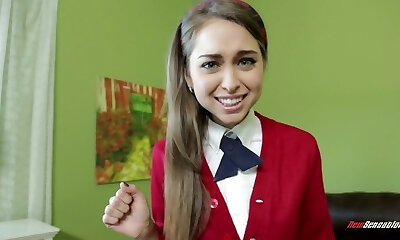 Sexy Striptease Foot Worship: Brunette Bombshell Shows Off Her Curvy Body in His Workplace