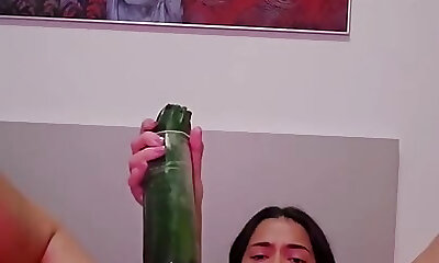 Brunette Moans While Inserting Huge Veggie