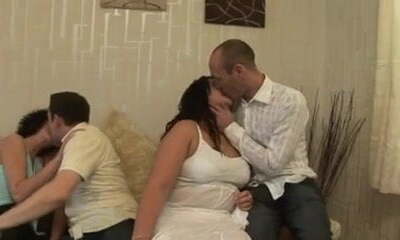 Bisexual Threesome: Two Cocks, One Horny Busty Woman